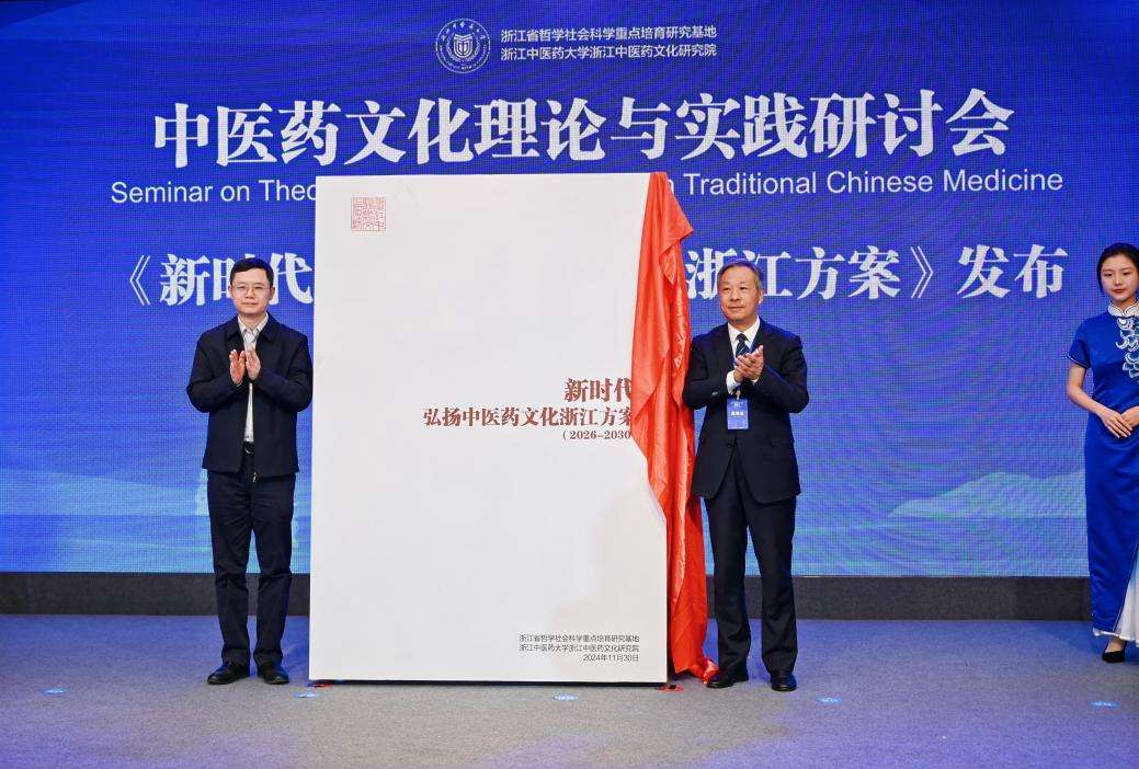 在开幕式上,有关领导为“新时代中医药文化理论与实践科研协作单位”、“中医药大健康产业联盟单位”授牌,为浙江中医药文化研究院学术委员会增补委员颁发聘书。同时,发布了由浙江中医药文化研究院制定的《新时代弘扬中医药文化浙江方案》。
