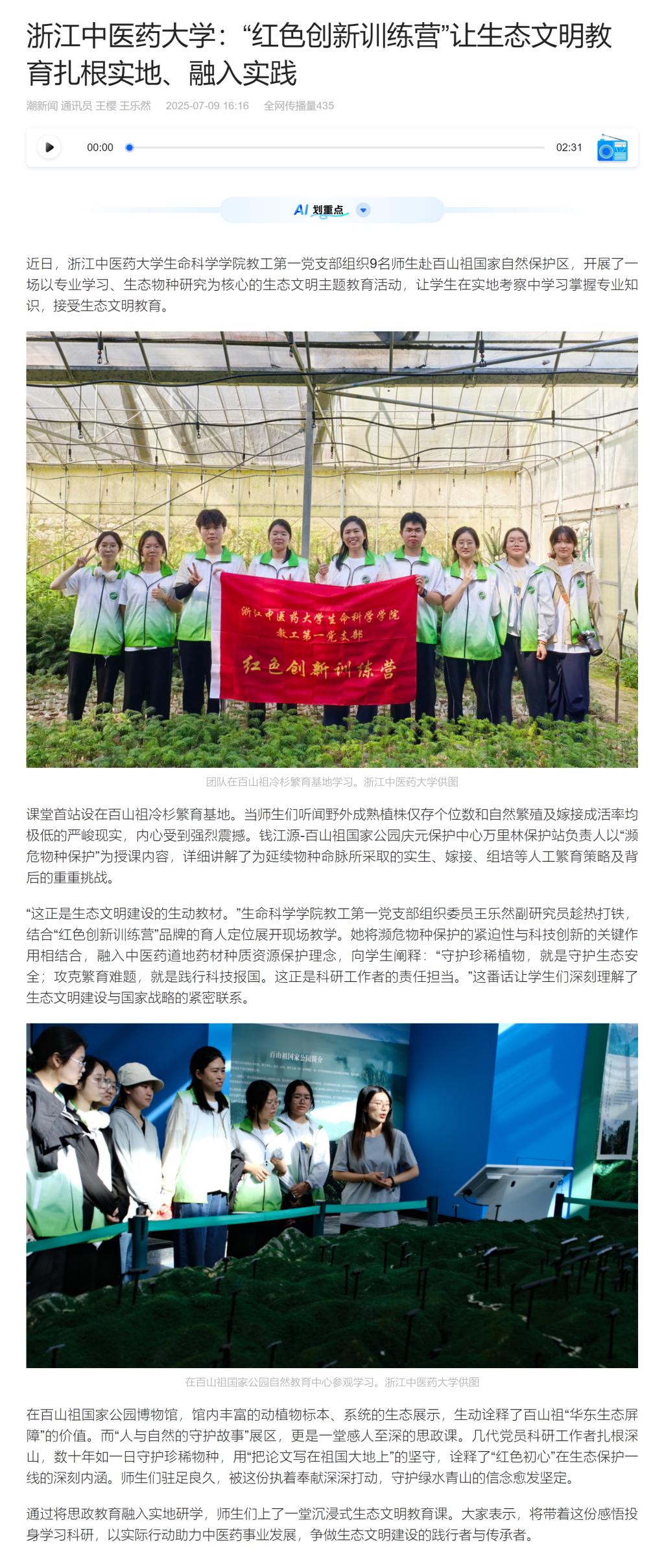 潮新闻:久久精品一区二区三区四区:“红色创新训练营”让生态文明教育扎根实地、融入实践