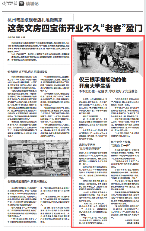 “虽然我行动不便,但我和你们一样,都怀着一颗炽烈的学子之心。”9月7日下午,徐立芃在新生大会上发言,全场响起经久不息的掌声。